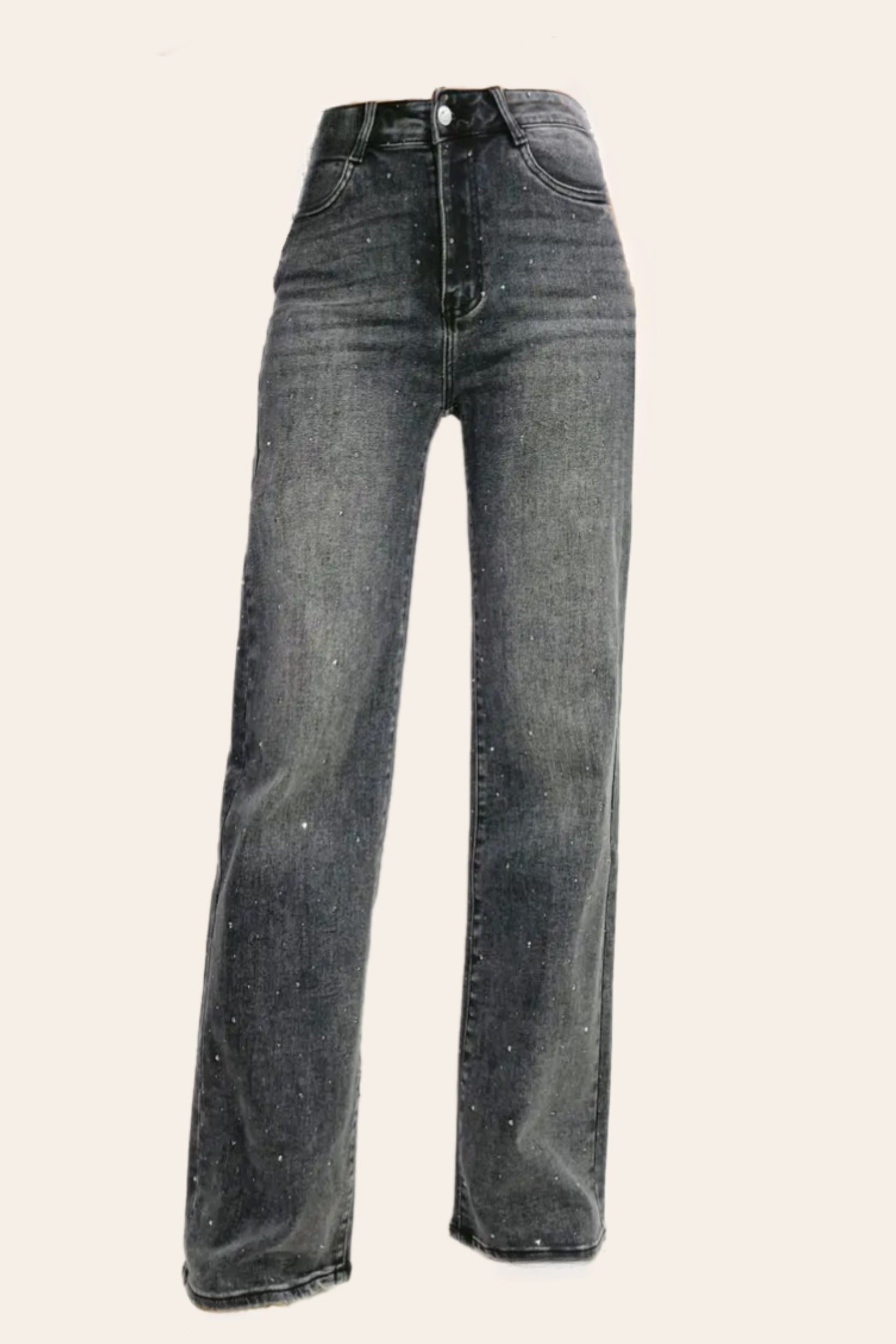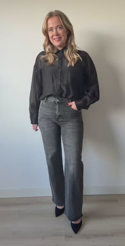 Maak kennis met de Shine Jeans: een high-rise denim met subtiele sparkle details die jouw outfit nét dat beetje extra geven. De lichte glitter in de stof zorgt voor een verfijnde, luxe look—perfect voor zowel casual als chique styling.